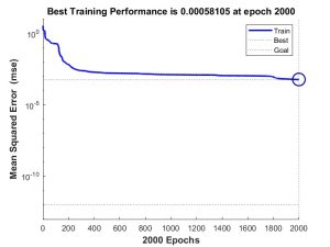 Fig.7(b) shows the change in the graph of the mean squared error curve between the desired target and the response of the neural network during training. Adjustment of the weights of the individual connections continues until the set threshold is reached.