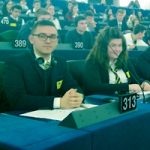 Учениците участваха в младежкия дебат „Твоята Европа, твоето мнение“ в Брюксел. В него участваха деца на 16 – 17 години от 33 европейски страни, които дискутираха темата за мигрантската криза в Европа. В мултинационални групи младежите дискутираха най-наболелите проблеми, пред които е изправена Европа вследствие на голямата бежанска вълна, и възможните им решения. България бе представена от преподавател и трима ученици от СОУ „Цар Симеон Велики“ във Видин. Мира Николова, Едуард Драганов и Илияна Киндиянова се подготвят за конференцията още от края на февруари. Тогава в училището им гостува Веселин Митов, член на Европейския икономически и социален комитет – институцията, която организира дебата. Децата правят проучване по темата и организират редовни срещи, на които обменят информация и идеи. „На форума се обединихме около идеята, че е най-добре за новодошлите да има допълнителни часове, в които да усвояват езика, а освен това на децата да помагат техни връстници. Много по-добре е някой на твоята възраст да ти помага да свикнеш с новата среда“, разказва Мира. „От миналата година в нашето училище има момиче, което е избягало със семейството си от Сирия. Всички ученици и учители се отнасяме позитивно и й помагаме да се чувства добре. Тя говори прекрасен английски, което улеснява много комуникацията“, разказва Едуард.