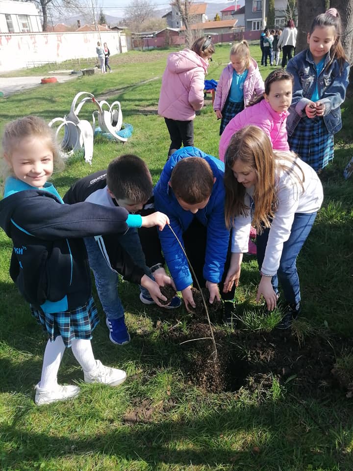 Малка гора от близо 50 дървета – иглолистни и дъб, кестен, липа, дива череша, засаждат в обширния си двор ученици от Първо ОУ „Васил Левски“ в Костинброд. Инициативата е част от традиционното отбелязване в школото на Международния ден на Земята – 22 април. Учениците засаждат и цветя, а всичкият посадъчен материал тази година е предоставен от Община Костинброд, съвместно с „Гора бг“.