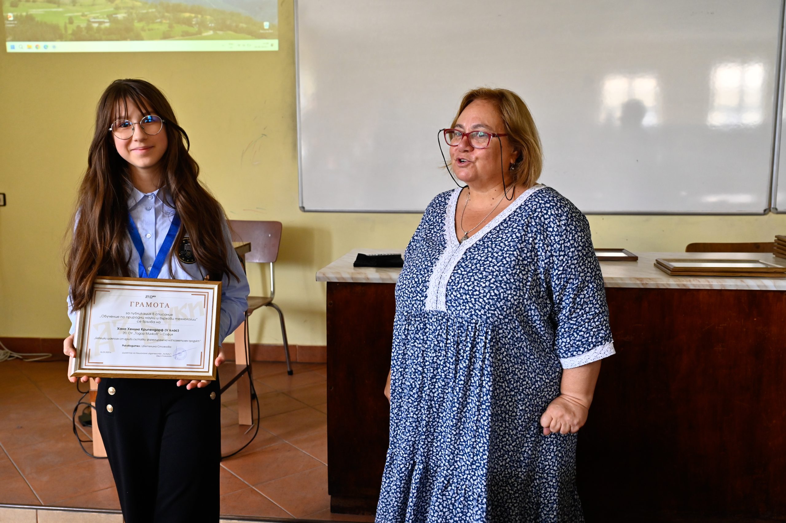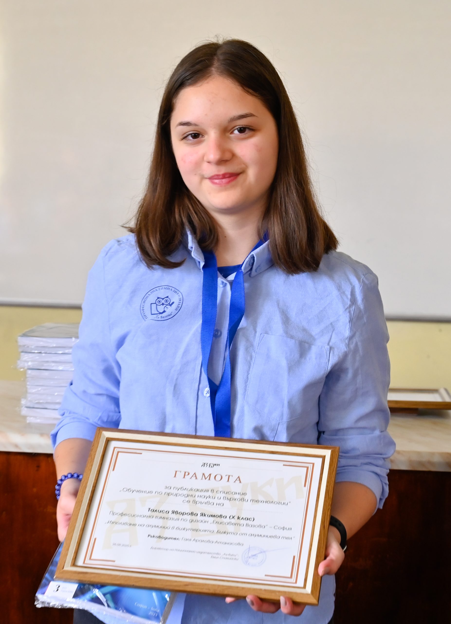 Научен ръководител на двамата е Мария Георгиева. Ива харесва химията от малка и тя е категорична, че ще се занимава и в бъдеще с тази дисциплина. Според нея в химията има много логика и лесно се учи. Свързва я по някакъв начин и с математиката, която също ѝ е любим предмет. Представянето на конкурса е най-доброто ѝ постижение засега. Нейният съученик Даниел също харесва формулите и тяхната логика. Разбира ги и това ги прави още по-интересни за него. Със сигурност ще кандидатства нещо, свързано с химията – може би в Медицинския университет и ще се насочи към хирургията.
