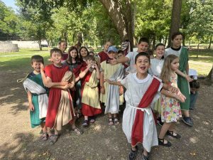 Всеки ден започва с гимнастика. А телефоните остават настрана, за да се откъснат децата от модерните технологии и да съпреживеят всичко, което ги очаква. Програмата продължава с тематична лекция, а след като всички се събудят, гласовете на малките „римляни“ огласяват откритите пространства в музея и започва практическата част.