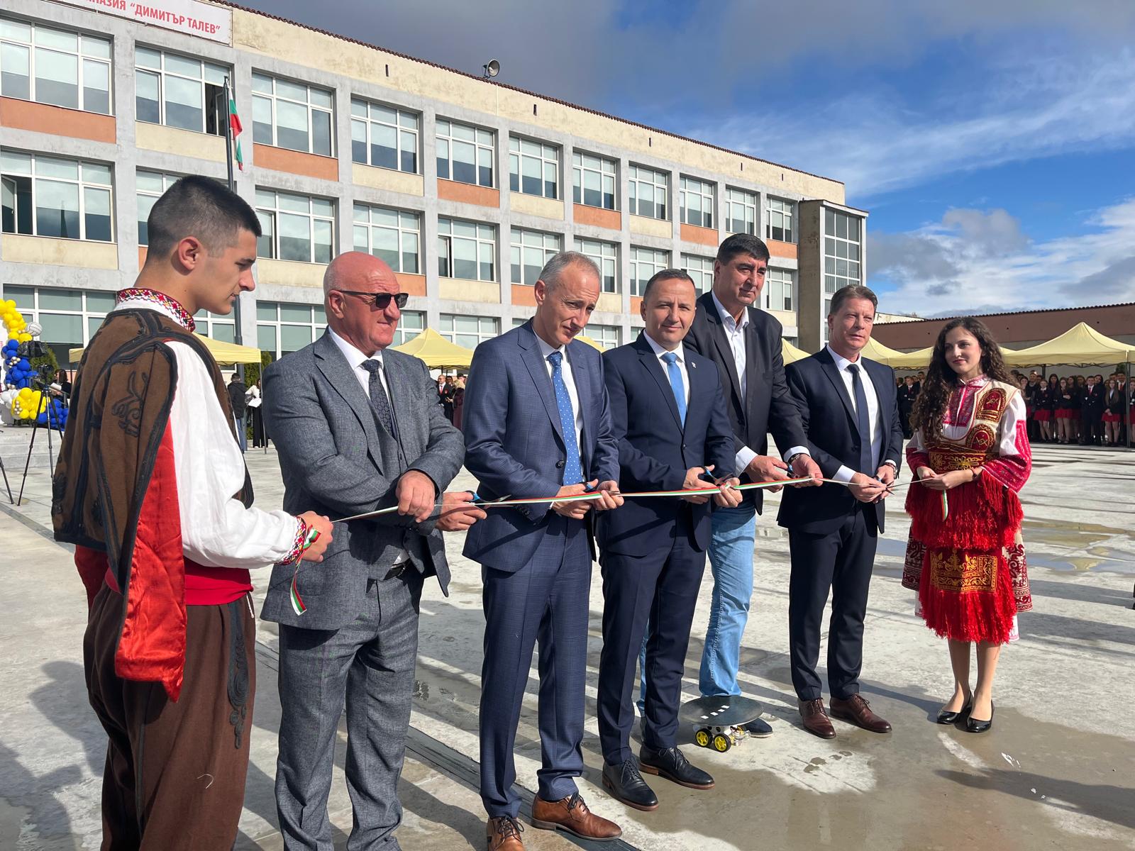 Министър Вълчев поздрави директора Манчо Джуркин, че е инвестирал успешно отпуснатите от МОН близо 6 млн. лева за изграждане на нов учебен корпус. Благодарение на инвестицията училището може да премине на едносменен режим на обучение. В него вече функционира и модерно оборудван дентален кабинет.