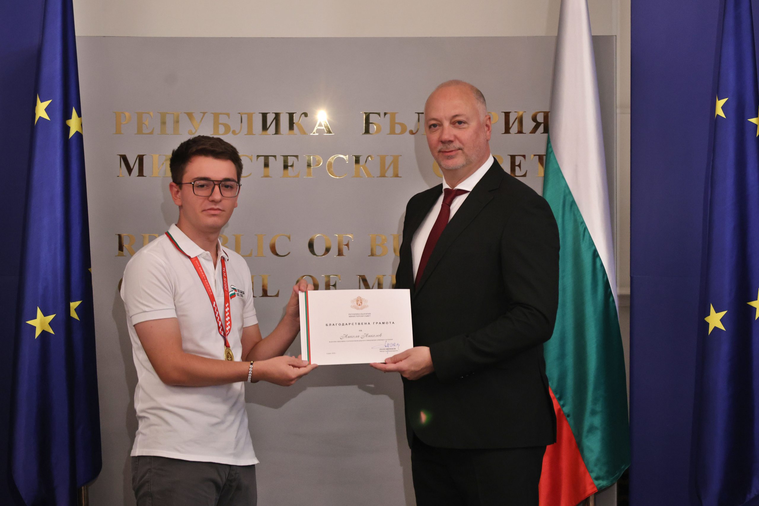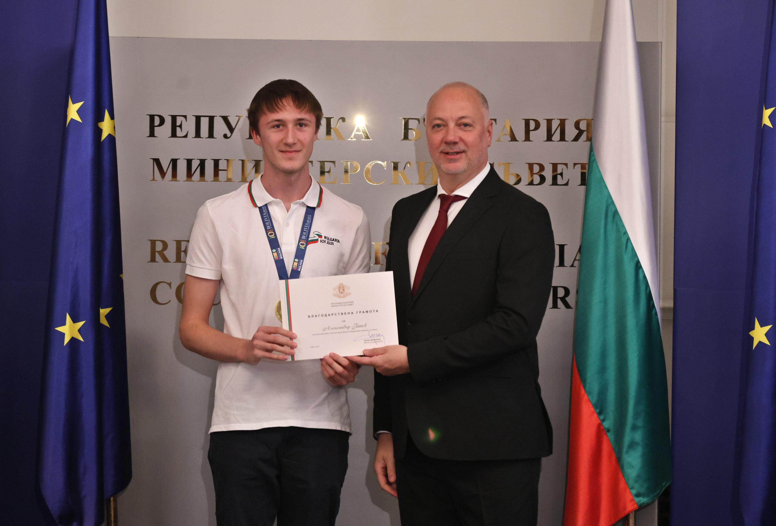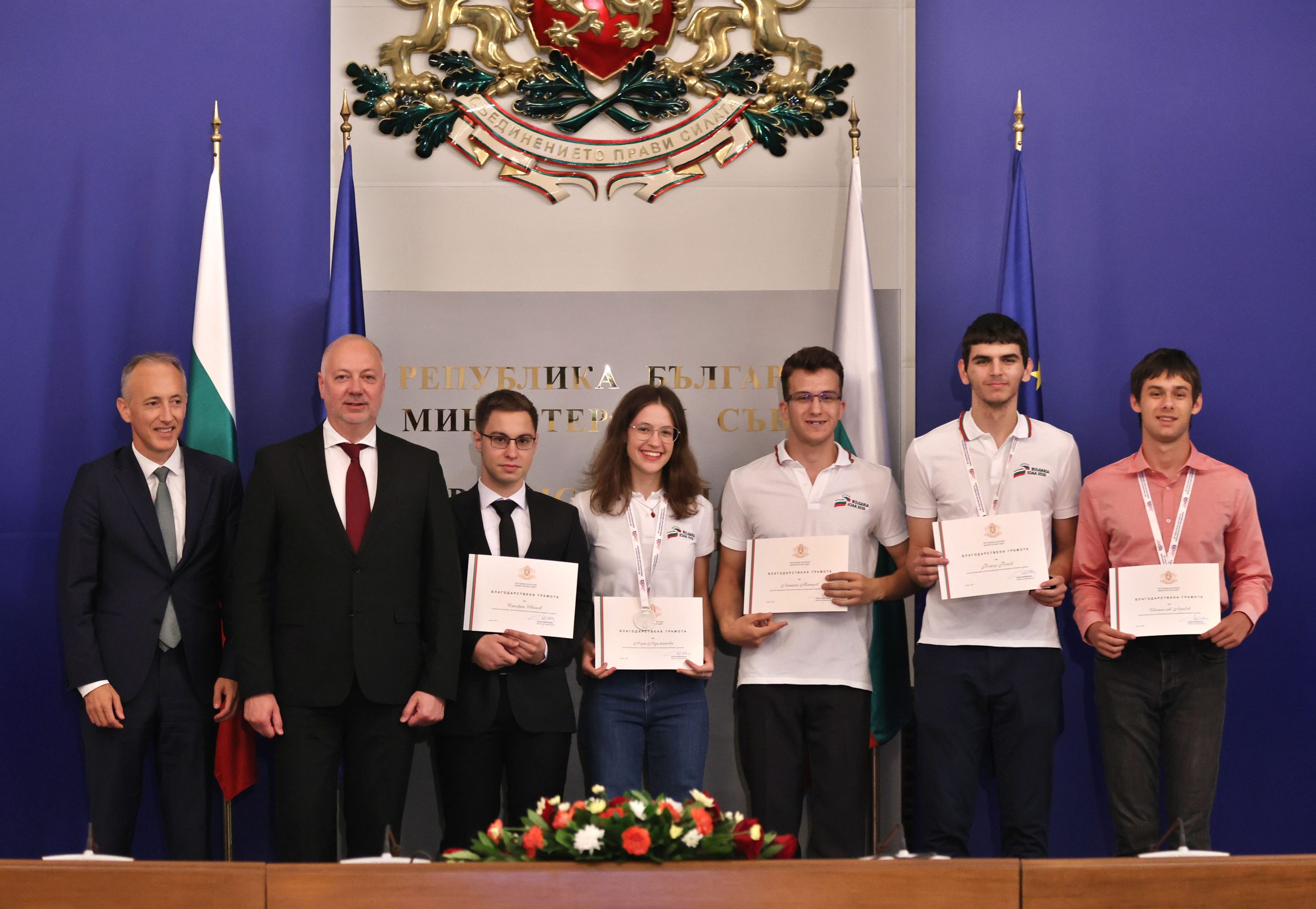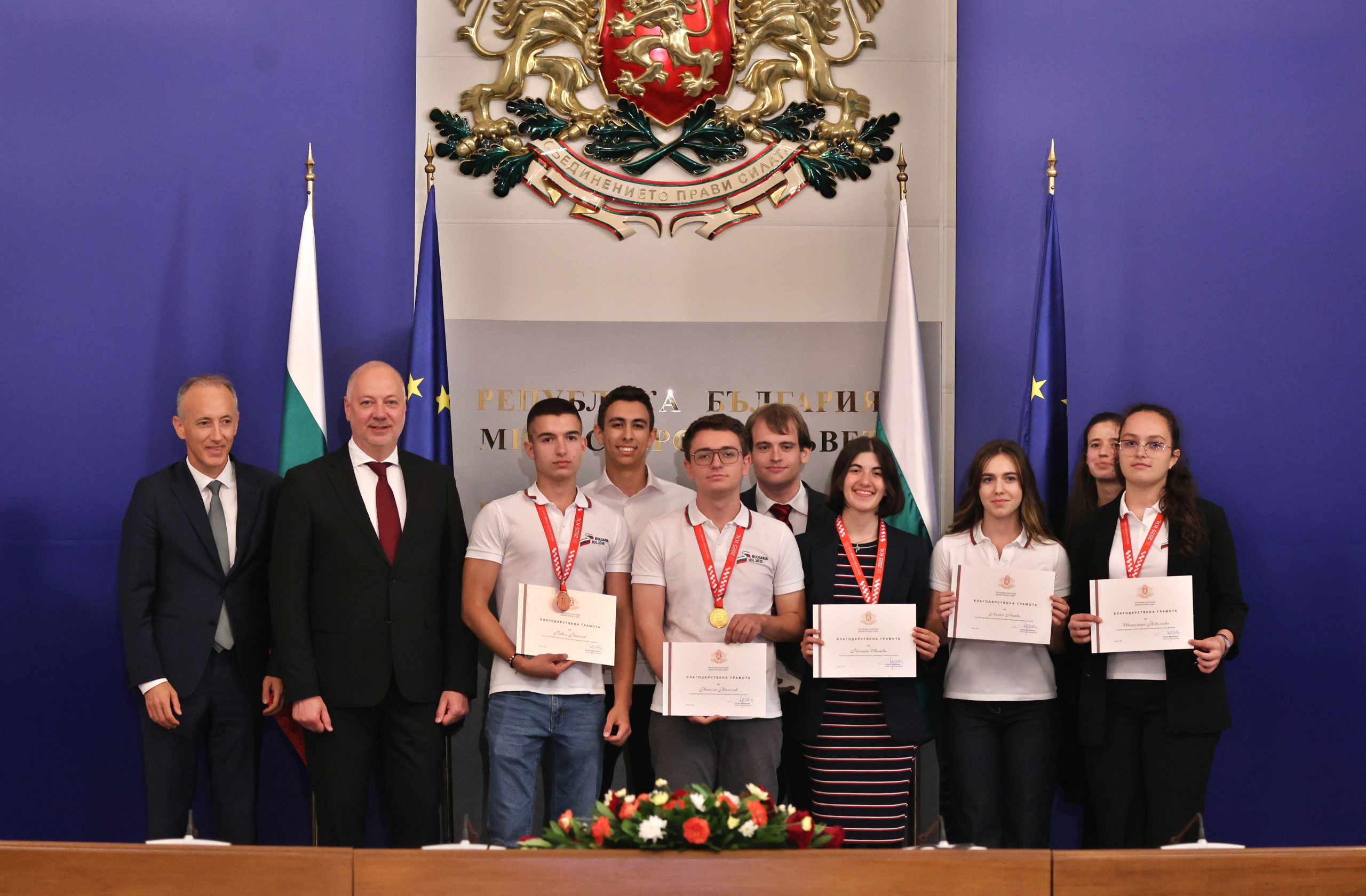 Българските ученици, спечелили медали от международните олимпиади по природни науки през 2025 г., бяха отличени от министър-председателя Росен Желязков на церемония в Министерския съвет. На нея присъстваха министърът на образованието и науката Красимир Вълчев и представители на Сдружението на олимпийските отбори по природни науки.