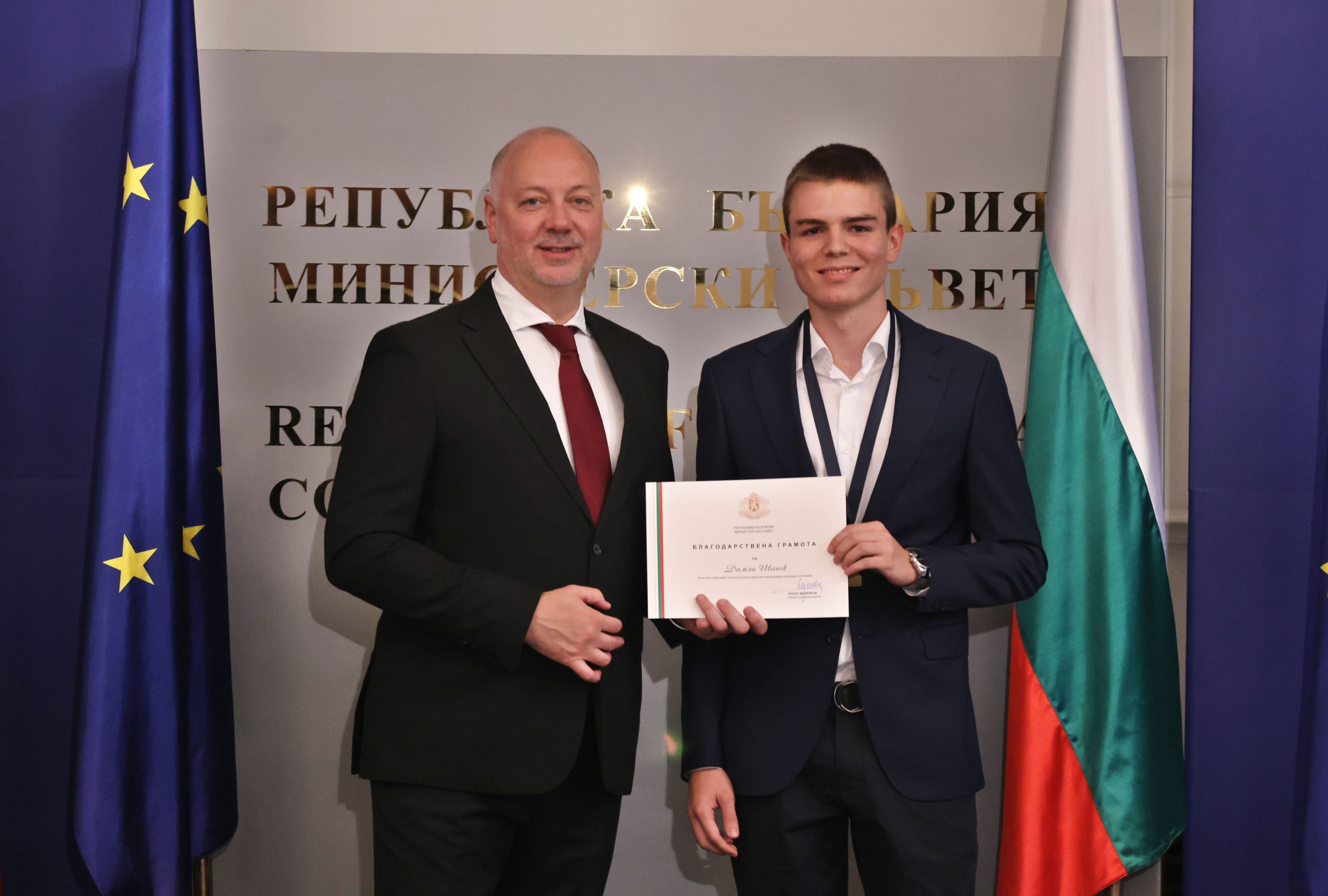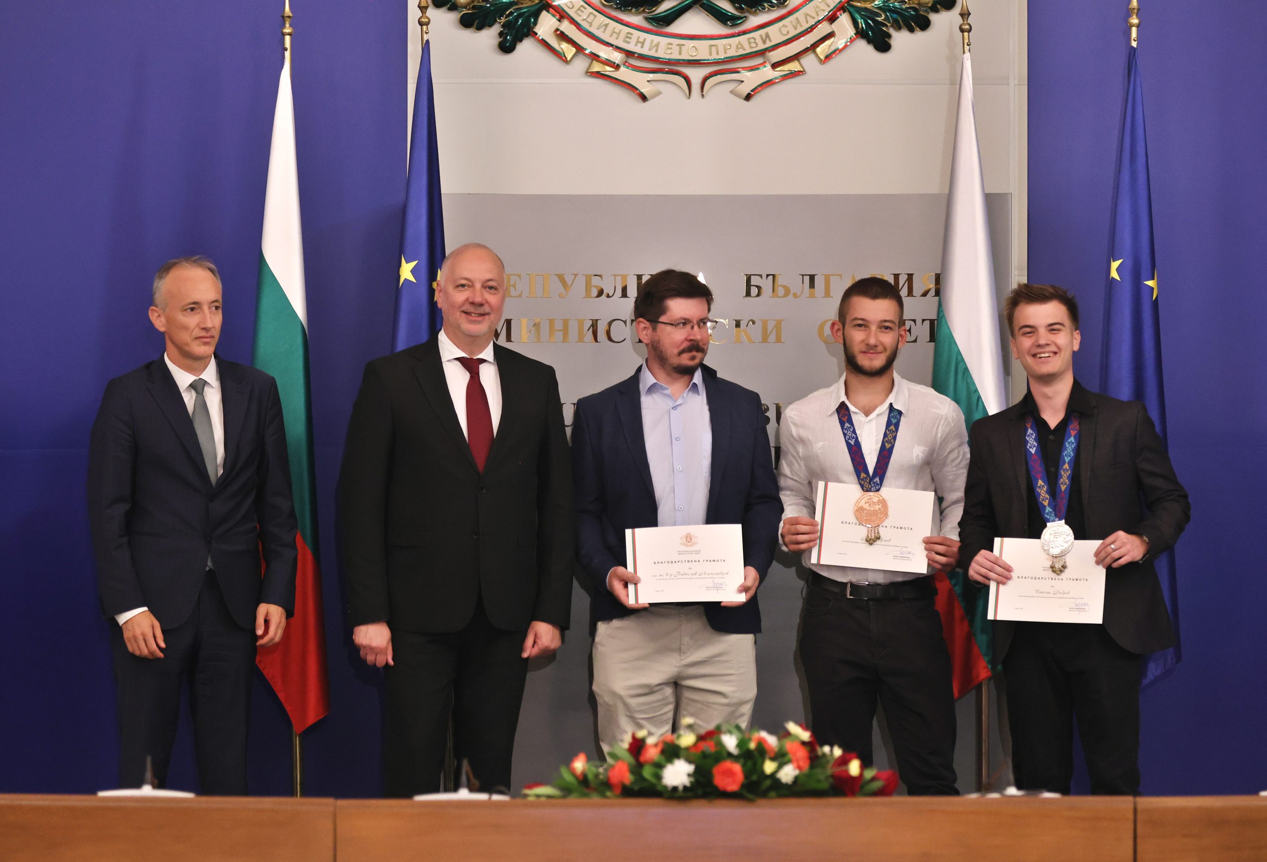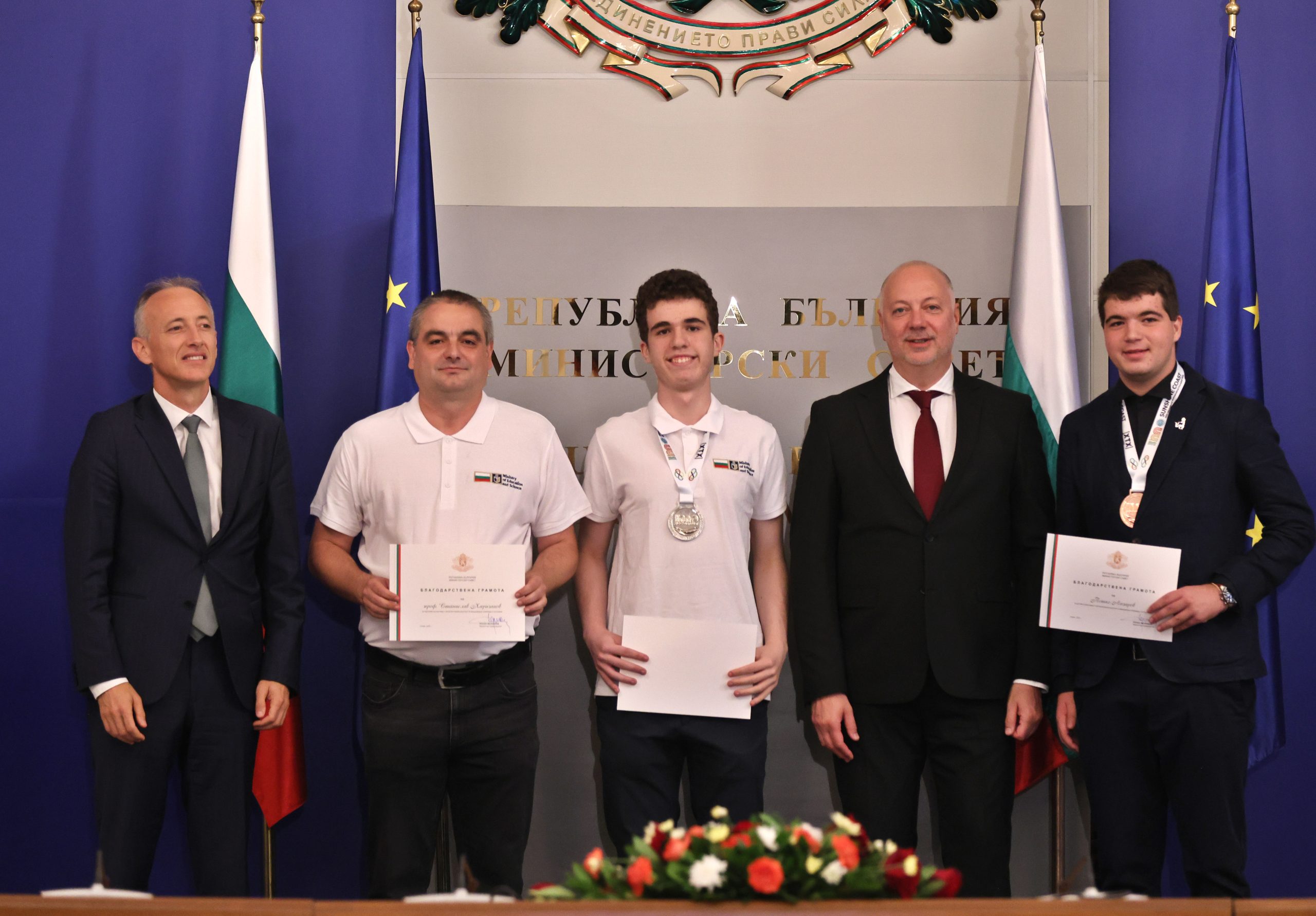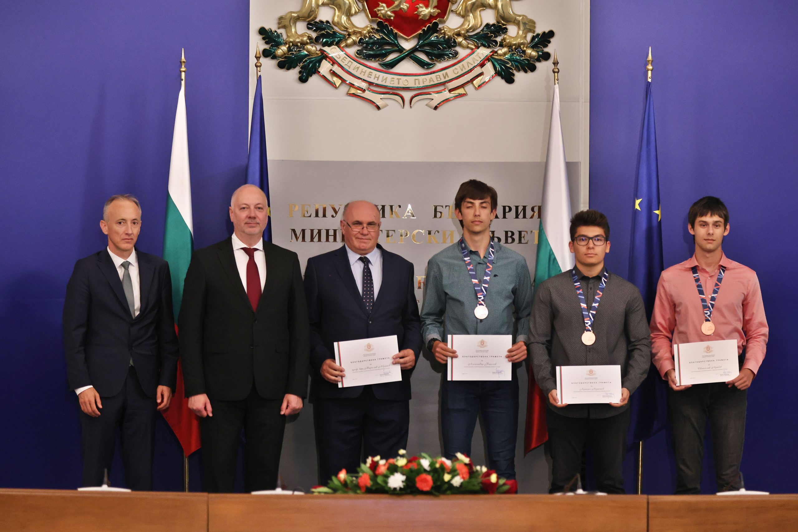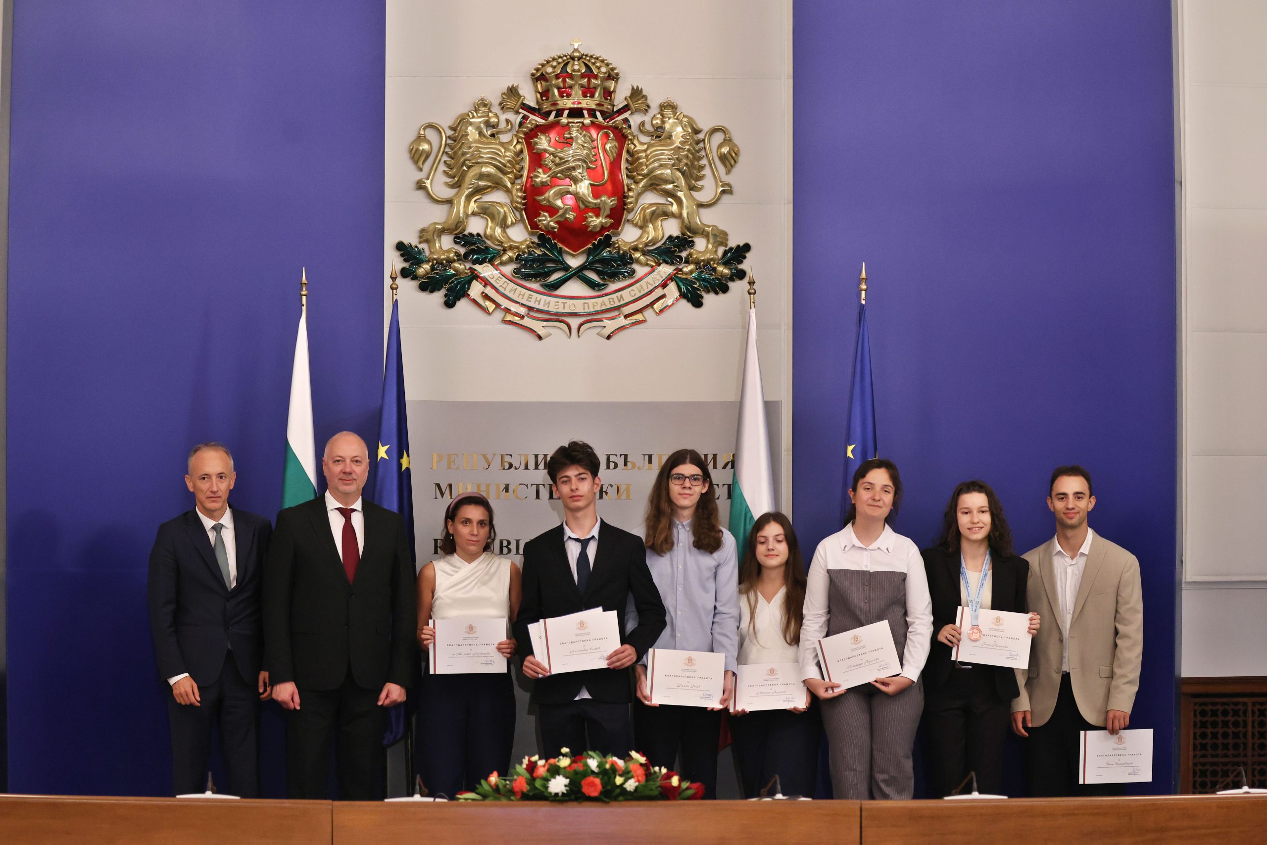 „Гордост е да видим, че сте развели българския флаг на толкова места по света, сред които Китай, Индия, Франция, Дубай. Има още редица състезания до края на годината. Убеден съм, че на тях ще спечелим още медали. Поздравления за вашата работа и упоритост, защото талантът не е достатъчен. Знаем, че зад вашите постижения стои много ежедневна работа и упоритост“, обърна съм към медалистите министърът на образованието и науката Красимир Вълчев.