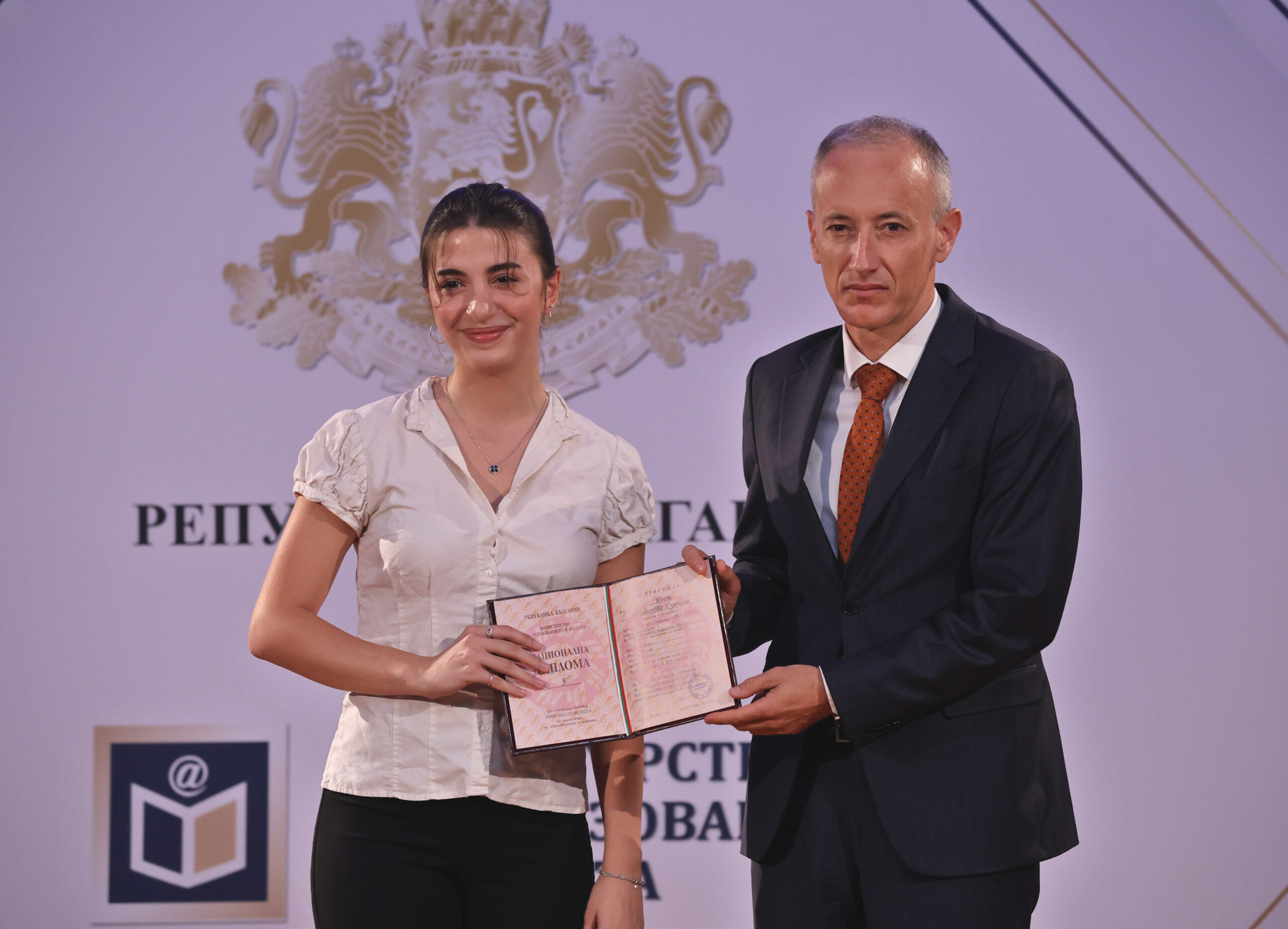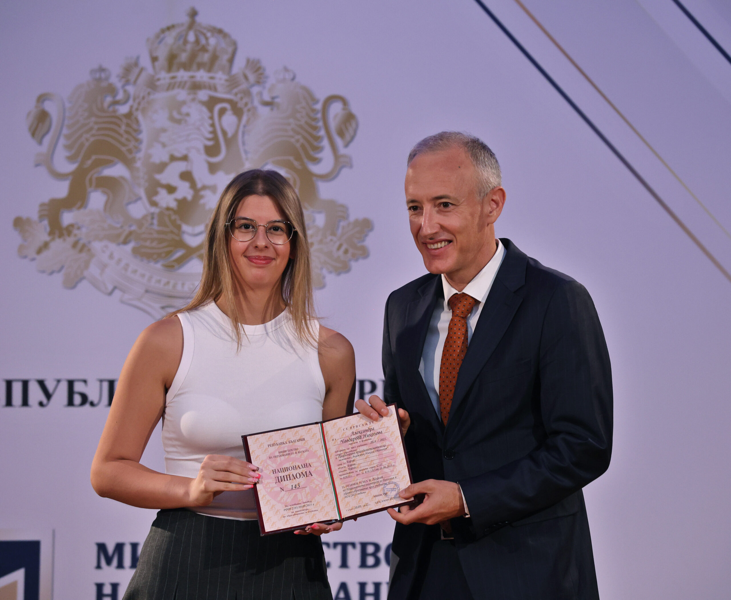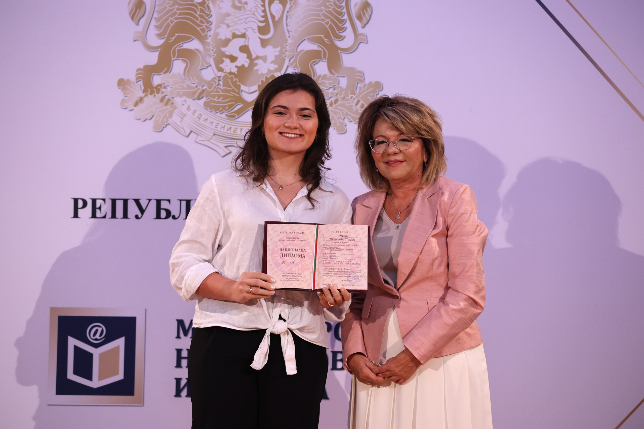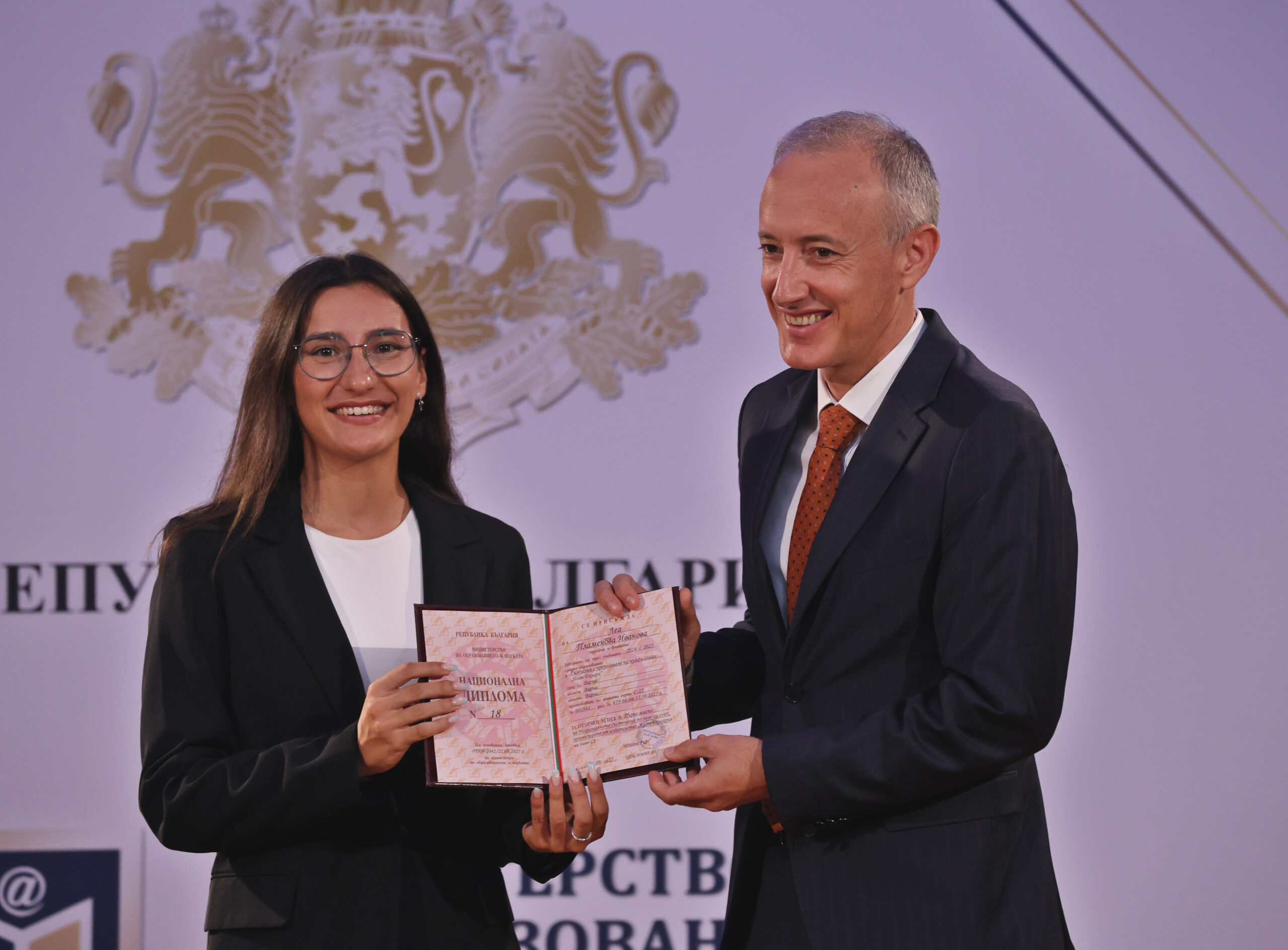 „За мен една от най-добрите новини по време на годишните връчвания на националните дипломи е, че все по-често тези млади хора избират да продължат обучението си в България“, отбеляза министър Красимир Вълчев. Той поздрави лауреатите за упорития труд през всичките години на гимназиалното си обучение.