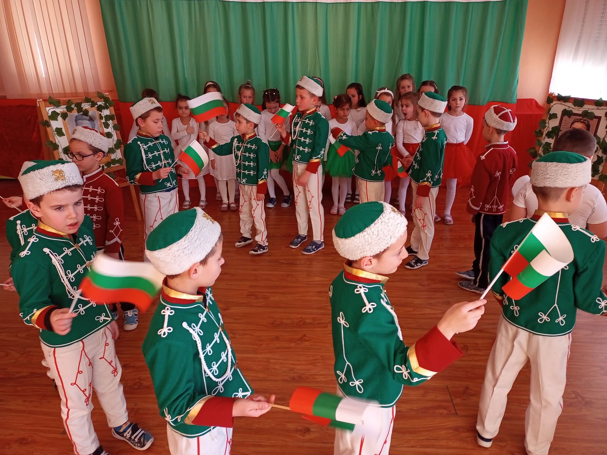 Малките ни възпитаници отбелязват годишнини от рождението или смъртта на велики българи като Христо Ботев, Васил Левски, както и годишнини от исторически събития и български празници – Освобождението на родния град от османско владичество, Трети март, Ден на будителите.