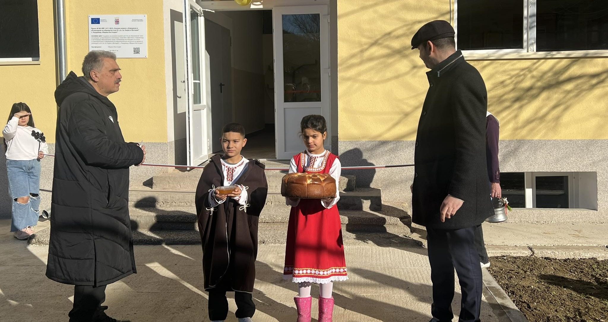 Лентата бе прерязана по повод успешното реализиране на проекта „Основен ремонт, оборудване и обзавеждане на общежитие към НУ „Св. св. Кирил и Методий“ – с. Раждавица“.