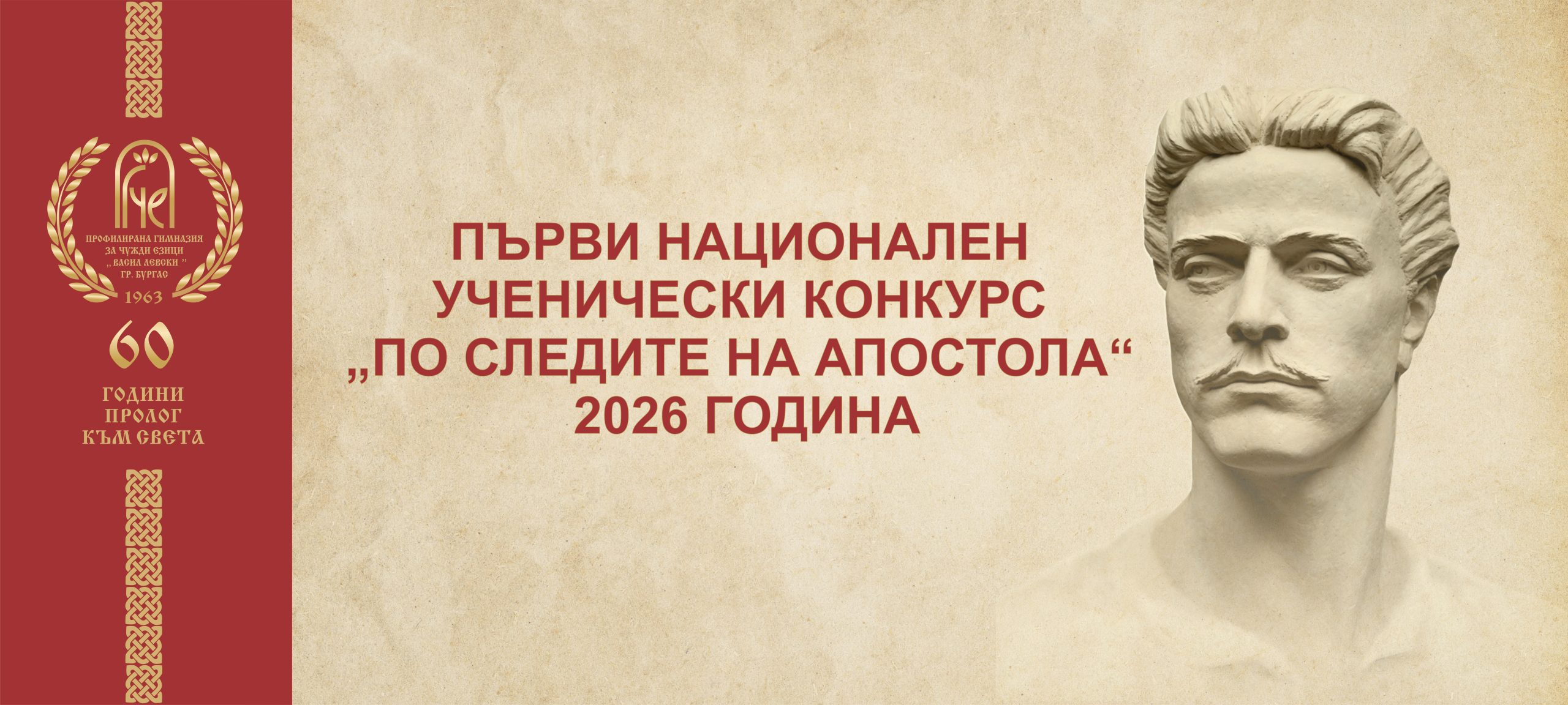 Повече от 1000 участници се включват в Първия национален ученически конкурс „По следите на Апостола“, информират за „Аз-буки“ организаторите от Профилираната гимназия за чужди езици „Васил Левски“ – Бургас, с директор Весела Иванова, които провеждат надпреварата с подкрепата на Регионалното управление на образованието и МОН.