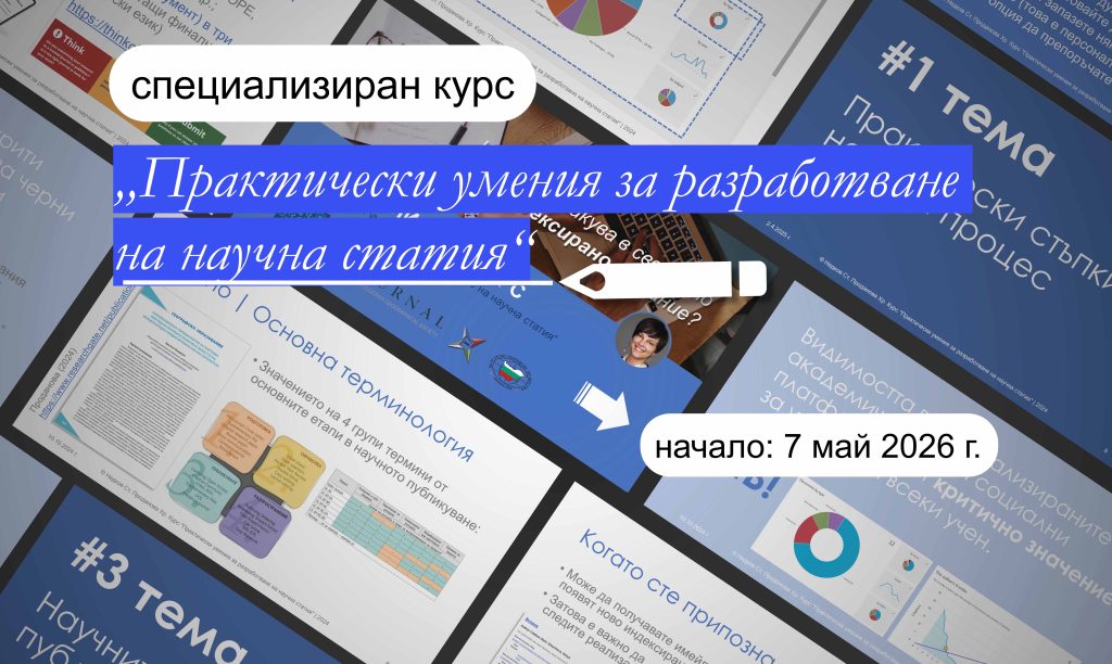 Българското географско дружество съвместно с Национално издателство за образование и наука „Аз-буки“ стартират нова група на специализирания курс „Практически умения за разработване на научна статия“. Обучението е насочено към млади учени, докторанти, преподаватели и всички, които искат да развият уменията си за успешно публикуване в научни издания.
