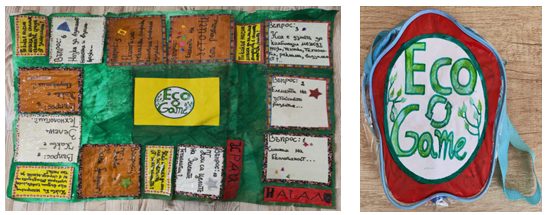 Eco Game в опаковъчен хартиен плик с игрално поле, пулове, карти с въпроси, инструкция и собствено лого. Екоиграта е ръчно изработена от използвани материали. Тя е образователна; развиваща и стимулираща мисленето и креативността на потребителите (фиг. 4.).