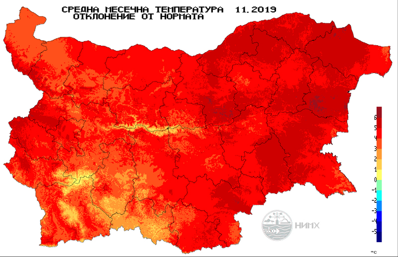 През 2019 г. най-топлият месец спрямо климатичните норми бе ноември.
