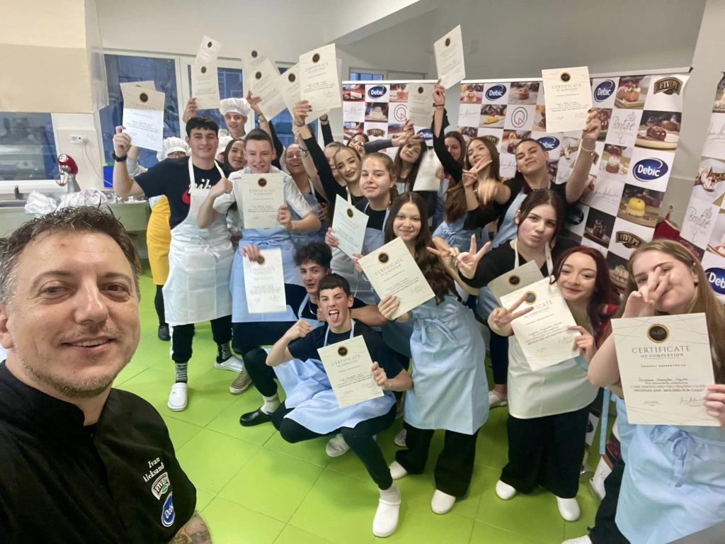 Майсторският клас, проведен от един от най-талантливите български сладкари с деветокласниците от варненската ПГ по туризъм, се превръща в ценна среща.