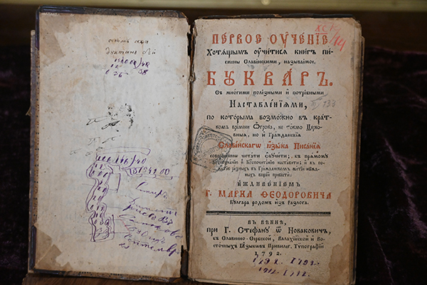 В централните витрини са разположени първото и последващи издания на „Буквар с различни поучения“ на д-р Петър Берон, „Славеноболгарское детоводство“ на Неофит Бозвели, както и букварите на Найден Йоанович, Константин Теодорович, Павел Калянджи, Кузман Шапкарев, Христо Данов, Рашко Блъсков и Георги Бусилин.