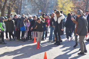 В Професионалната гимназия по химични технологии и биотехнологии „Мария Кюри“ сутрешната гимнастика минава под ръководството на Емил Динчев – представител от ПФК „Лудогорец“. Появата на орлицата Фортуна заедно със своя треньор Виктор Бариос внасят още повече настроение.