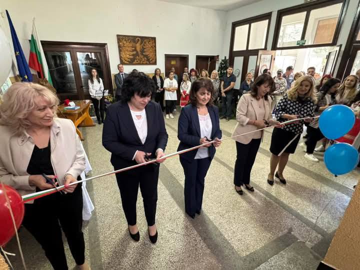 Кабинетът по математика и информатика пък е оборудван с многофункционално лазерно устройство, интерактивен дисплей и последен модел компютри.
