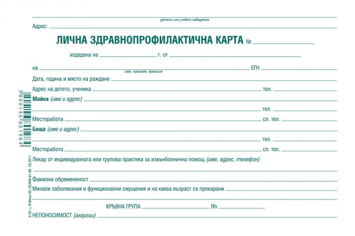 до които ще имат достъп специалистите от здравните кабинети в детски градини и училища. Това са ЕГН на детето, майка (име, адрес, телефон), баща (име, адрес, телефон), наличие на фамилна обремененост или алергии, антропометрични показатели: ръст/тегло/обиколка на гърди, информация за общопрактикуващия лекар на детето или ученика (име, адрес, телефон), за проведени имунизации и реимунизации или отлагането от такива по медицински противопоказания за период над 3 месеца.