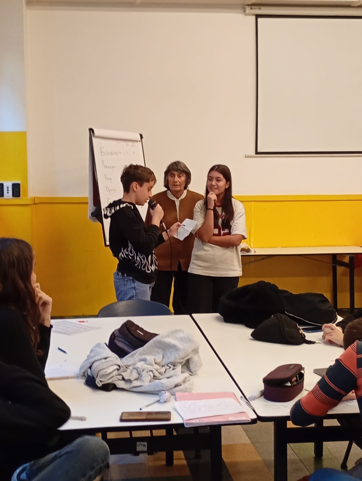 Милен Хальов и Цвета Брестничка работят с учениците от II и III клас. За кратко време успяват да привлекат вниманието на малко притеснените деца, събуждат ги и карат детското въображение да заработи, а в края на урока класната стая се изпълва с усмивки и прекрасни рисунки.