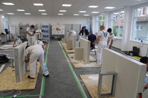 в дисциплините „Сухо строителство“ и „Зидарии“. На следващия ден беше практическата част на състезанието, когато сградата на Търновската строителна гимназия се огласи от желанието и старанието на участниците, които показаха много хъс и практически умения и компетентности за изпълнение на строителни и изчислителни дейности, придобити при обучението на професиите от направление „Строителство“ и „Архитектура, урабнизъм и геодезия“. Участниците приложиха в действие и формираните в процеса на обучението професионално-личностни качества – комуникативност, трудова дисциплина и етика и работа в екип.