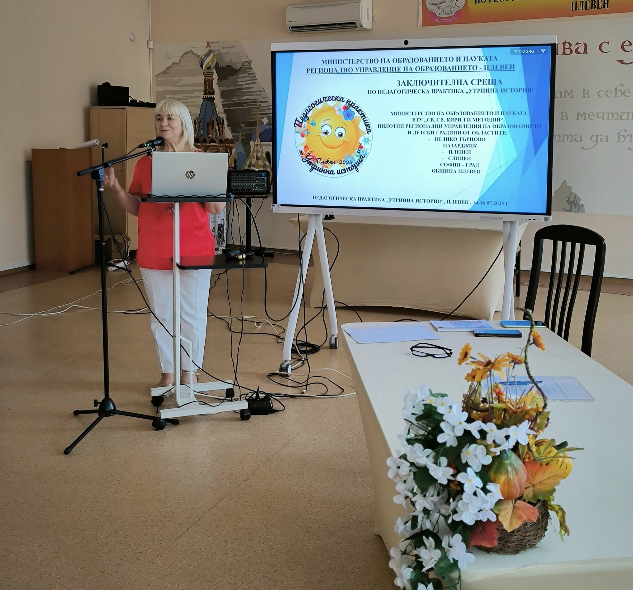 В рамките на работната среща в Плевен, която се организира съвместно от Министерството на образованието и науката, Регионалното управление на образованието, общината и детски градини, участниците споделиха резултати от прилагането на педагогическите практики. Предвижда се тези иновативни образователни програми да продължат и през следващите учебни години.