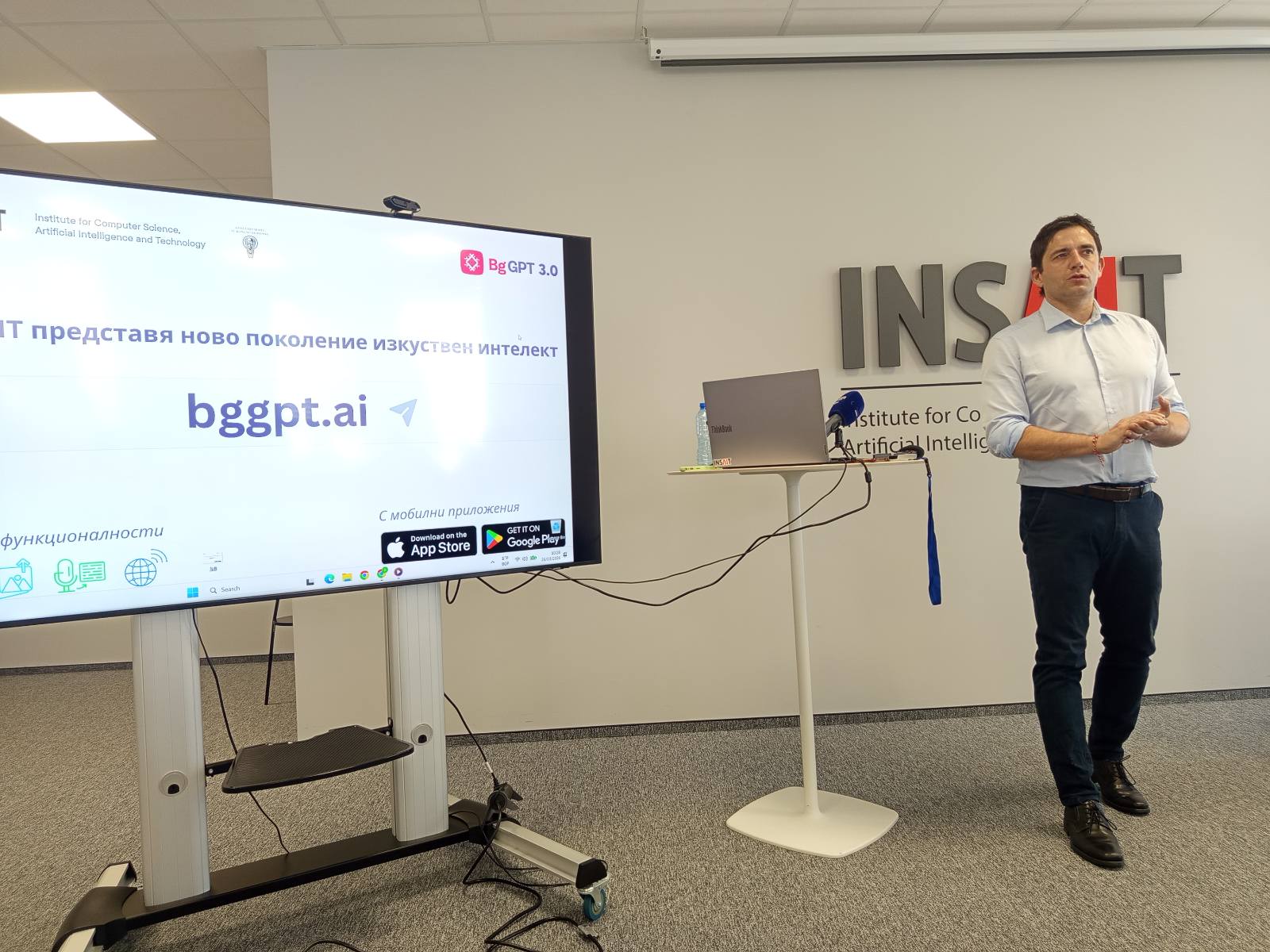 „INSAIT пуска за ползване безплатен публичен чат за всички български граждани и институции, който е изграден върху публична версия на платформата за суверенен изкуствен интелект“, каза създателят на INSAIT. Той допълни, че колкото повече се използва чатът, толкова по-добра ще става платформата.