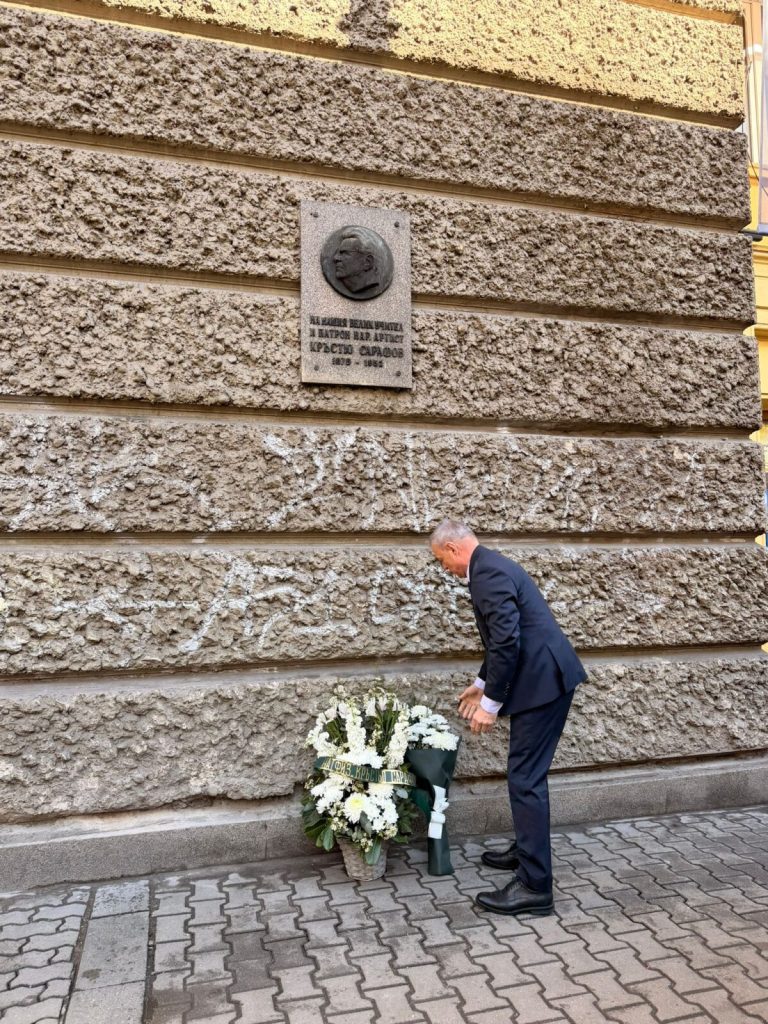 Министър Сергей Игнатов поднесе цветя пред паметната плоча на Кръстьо Сарафов