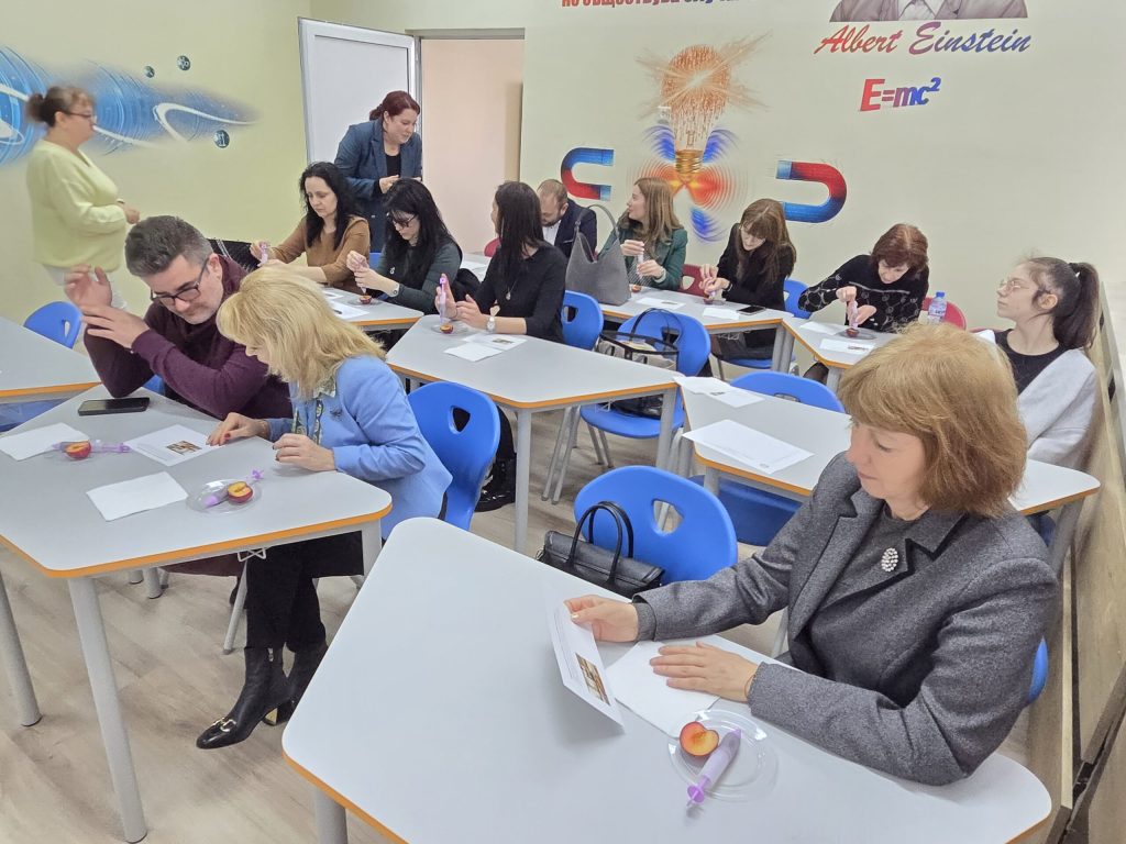 С помощта на LCD микроскоп гимназистите наблюдаваха структурата на клетката и разкриха как вътрешните ѝ гънки увеличават повърхността за производство на енергия.