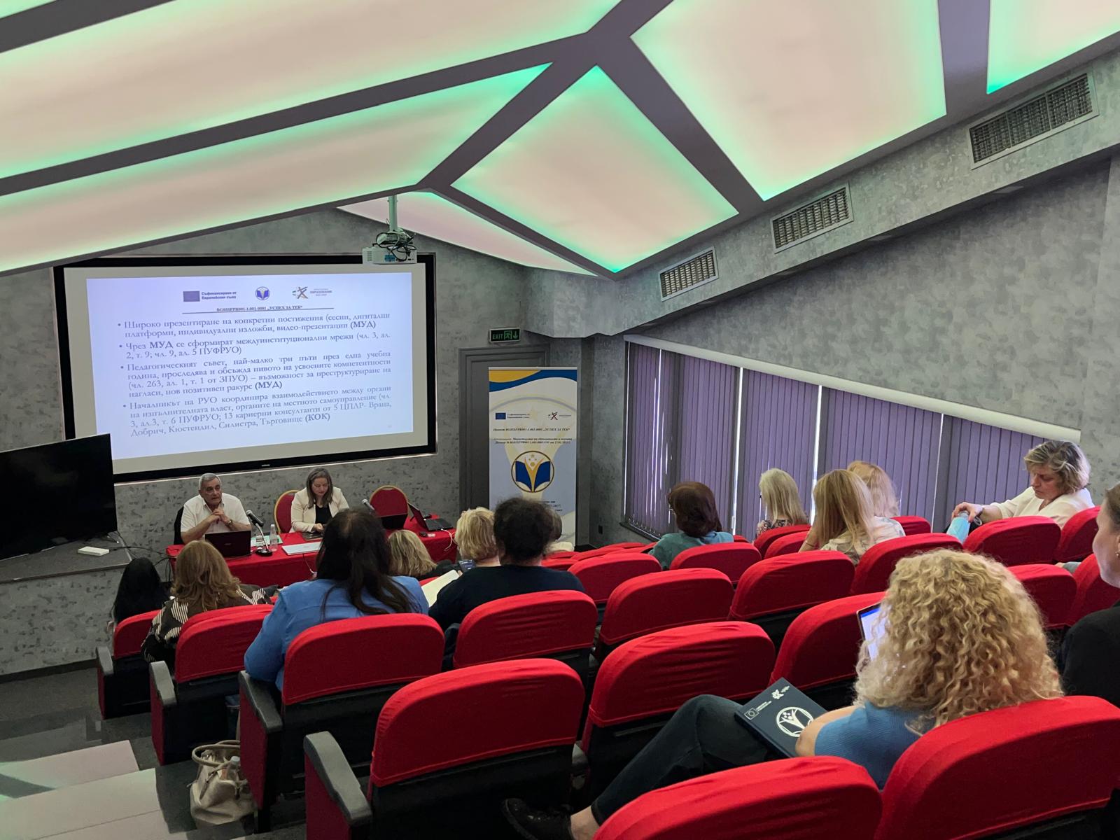 Специален акцент по време на срещата от екипа за управление на проект „Успех за теб“ поставят върху правилното използване на инструментариума за оценка на децата със специални образователни потребности, с таланти и в риск, за да се определи необходимата подкрепа за всяко от тях според индивидуалните му потребности и успешно личностно развитие – работа с ресурсен учители, логопед и колко допълнителни часове занимания по предмети са необходими, както и как оценяват напредъка на учениците.